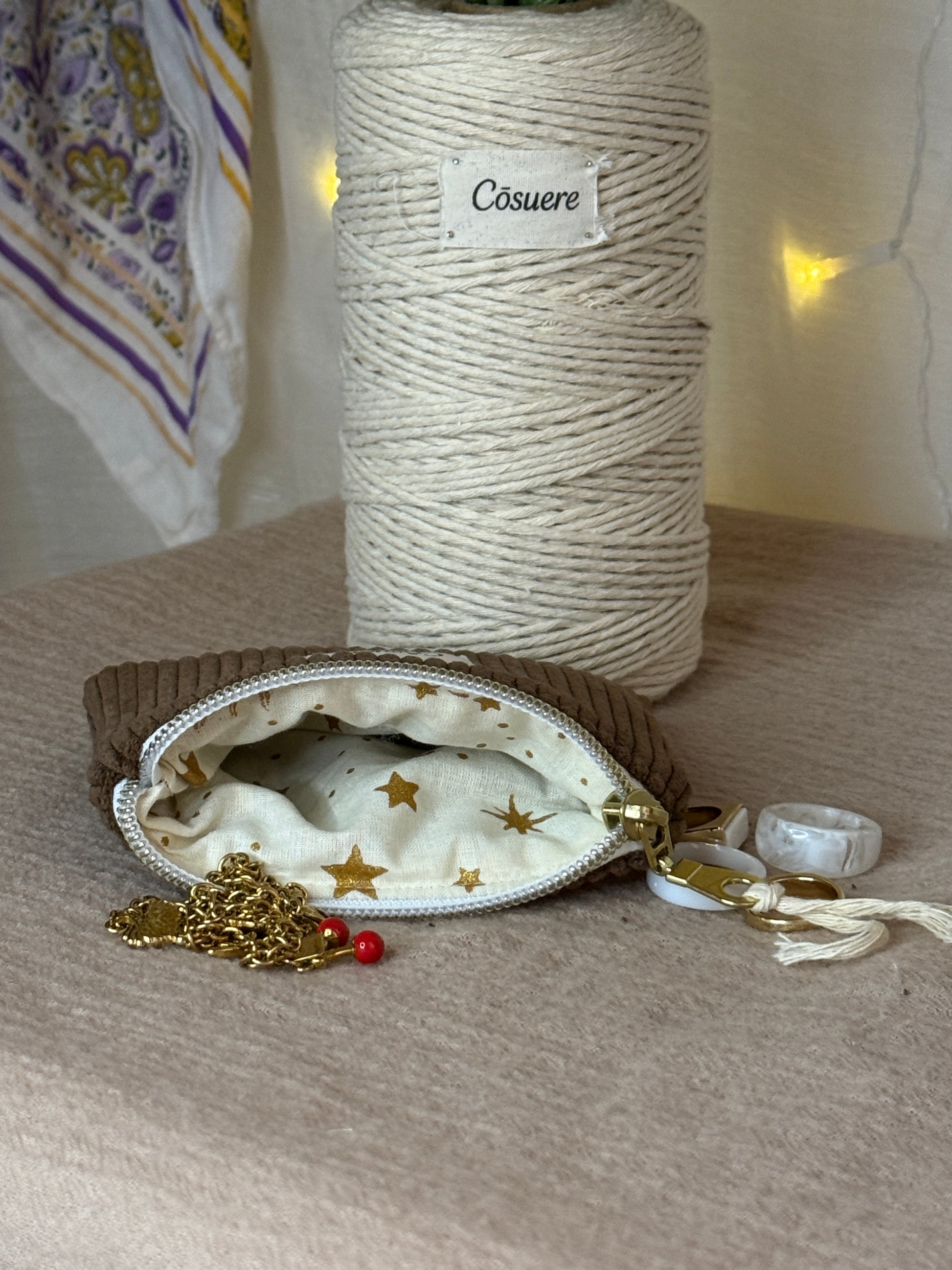 Raffiné et intemporel, ce porte-monnaie fait main allie élégance et praticité. Confectionné avec soin, il est l'accessoire parfait pour garder vos pièces et petits billets à portée de main.